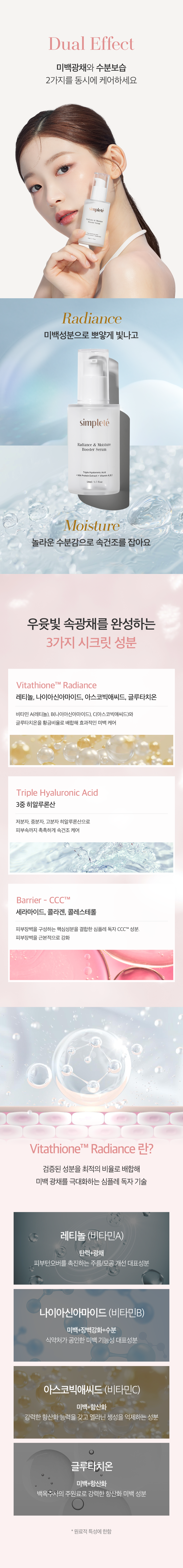 정제수, 메틸글루세스-20, 쌀겨왁스, 프로판다이올, 하이드로제네이티드레시틴, 펜틸렌글라이콜, 소듐스테아로일글루타메이트, 부틸렌글라이콜, 나이아신아마이드, 1,2-헥산다이올, 글리세린, 네오펜틸글라이콜다이카프레이트, 세틸에틸헥사노에이트, 세테스-20, 글리세릴스테아레이트, 세테아릴알코올, 하이드록시아세토페논, 시트릭애씨드, 폴리글리세릴-10라우레이트, 아크릴레이트/C10-30알킬아크릴레이트크로스폴리머, 알지닌, 소듐하이알루로네이트, 하이드롤라이즈드하이알루로닉애씨드, 소듐아세틸레이티드하이알루로네이트, 잔탄검, 에틸헥실글리세린, 아데노신, 글리세린, 레티놀, 카프릴릭/카프릭트라이글리세라이드, 세라마이드엔피, 콜레스테롤, 글루타티온, 아스코빅애씨드, 아르간커넬오일, 우유단백질추출물, 비피다발효용해물, 하이드롤라이즈드콜라겐, 마데카소사이드, 병풀추출물, 베르가모트오일, 리날룰